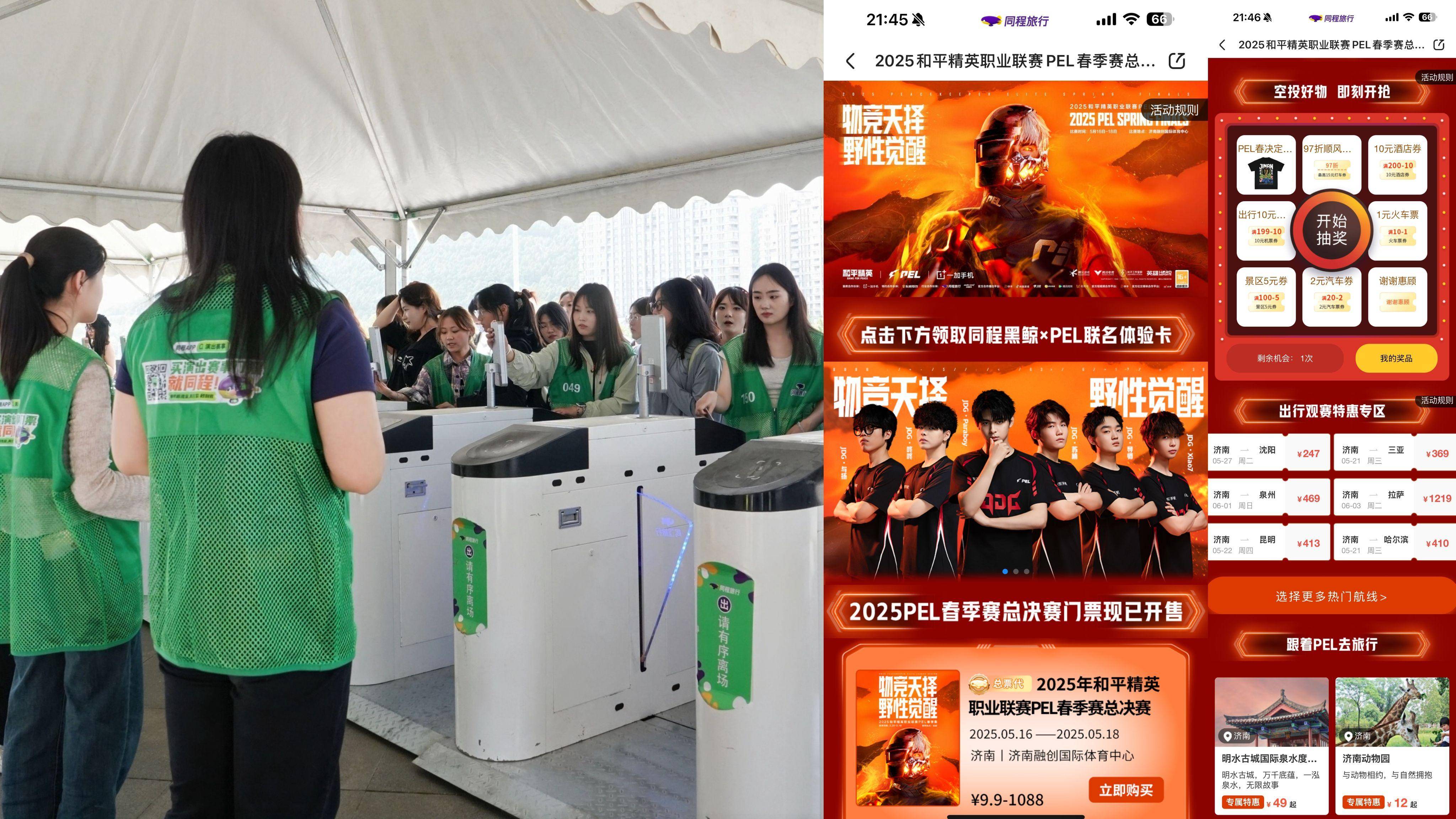 同程旅行作为2025 PEL行业合作伙伴暨官方售票平台,凭借其强大的资源整合能力,打通交通、住宿、景区、用车等资源体系,推出一系列 PEL 观众福利旅游产品,同程黑鲸体验卡、出行优惠券等福利,构建“观赛经济生态圈”,为PEL观众提供了一站式观赛服务与PEL共同带动了城市及其周边文旅消费的持续增长。