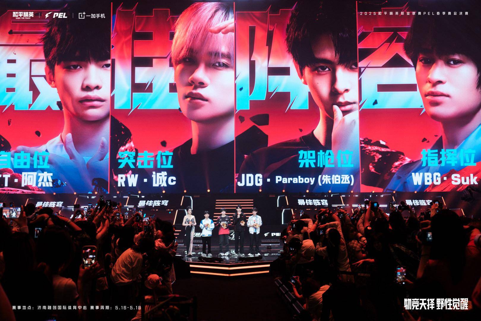 次日,广州TT继续保持稳定的发挥,广州TC紧随其后,卫冕冠军江西TJB则迎来了强势爆发,在第五、第六局连续吃鸡跃升至积分榜第五。第二天的比赛还对2025PEL春季赛常规赛表现出色的优秀选手进行了颁奖,TT·派大兴将常规赛MVP收入囊中,TT·阿杰、RW·诚c、JDG·Paraboy、WBG·Suk分别入选最佳阵容。