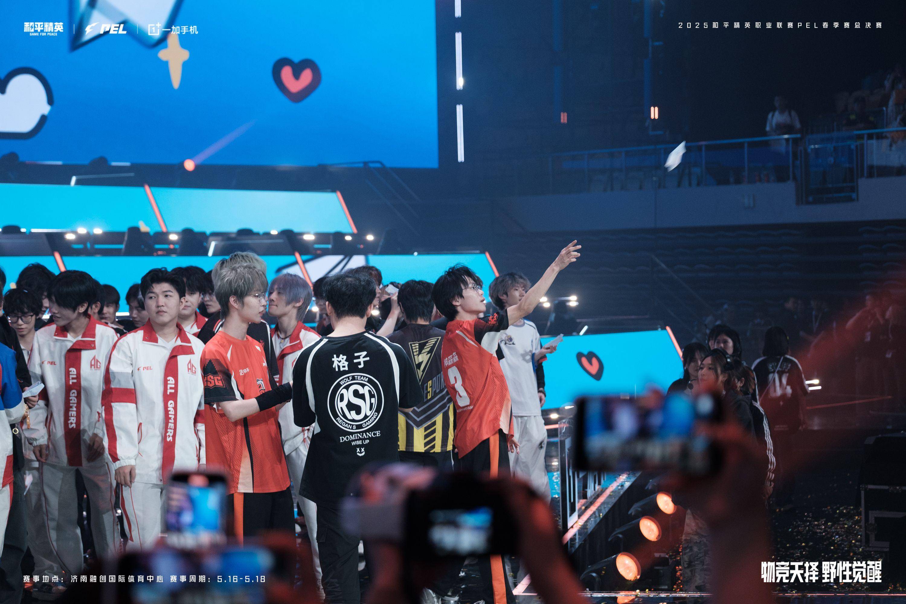 在赛事的尾声阶段,140名参赛选手齐聚舞台中央,一同对着观众们放飞手中承载着美好祝愿与鼓励的纸飞机,将选手们对未来的期许与憧憬送给来到现场的观众,祝愿大家都能向着美好的未来前进,也为2025PEL春季赛画上了圆满的句号。