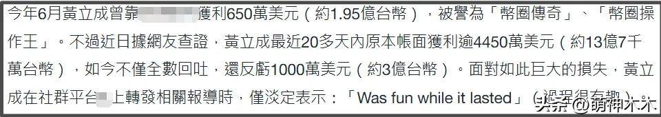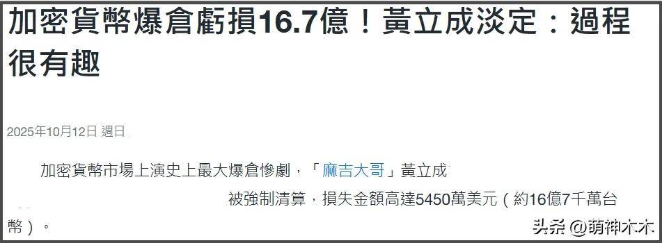 关于他的资产与财富走向,外界长期存在多种说法,始终是一个谜。台湾媒体曾据称做出计算,直到2025年10月,黄立成一次性亏损5450万美元,折合约3.8亿人民币,折算成新台币则约16.7亿。若把单位换算成台币来评估,损失的比例甚至可能超过个人总资产的十分之一,这一数字看起来尤为触目惊心。