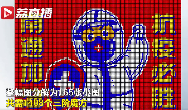 厉害了!南通14名小学生利用网课后的业余时间,完成了一个特殊的魔方拼图作品《坚守在防疫一线的大白》。