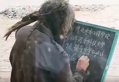 山东一流浪汉模样男子街边写字中英文切换,陵城区民政局:在各地徒步4年,已为该人士做核酸、提供相关帮助。