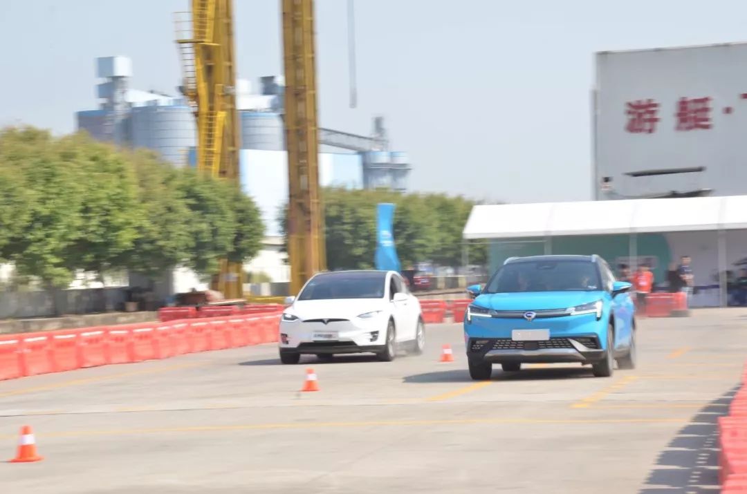 虽然这次没有亲自进行体验它的加速,但通过试乘,也明显感到了3.9S的加速带来的“猛劲”,而举办方为了让我们更直观地感受它的超跑般的百公里加速,还特地把Model X给拉来了,结果显而易见,Aion LX胜。