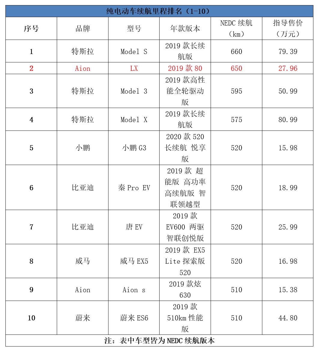 从上面的榜单也可以看出特斯拉的霸主地位,前四就独占了三个。不过Aion LX作为业界新人,也算是异军突起,一来就挤进榜单第二,已经很接近Model S的水平了,如果考虑到价格,无疑更吸引眼球。