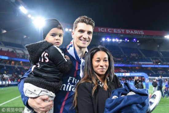 我的儿子现在还是一点儿也不知道我的职业。当我们在巴黎开车时,他会发现一个巴黎圣日耳曼的队徽,然后他就指着那里说:“那是爸爸,那是爸爸!”而来到球场以后他也有着同样的反应:他会把每一个穿着巴黎圣日耳曼球衣的人都看成是我。所以我觉得他是知道我在什么的。或许再过一两年,他就能清楚地说:“我的父亲是一名足球运动员。”